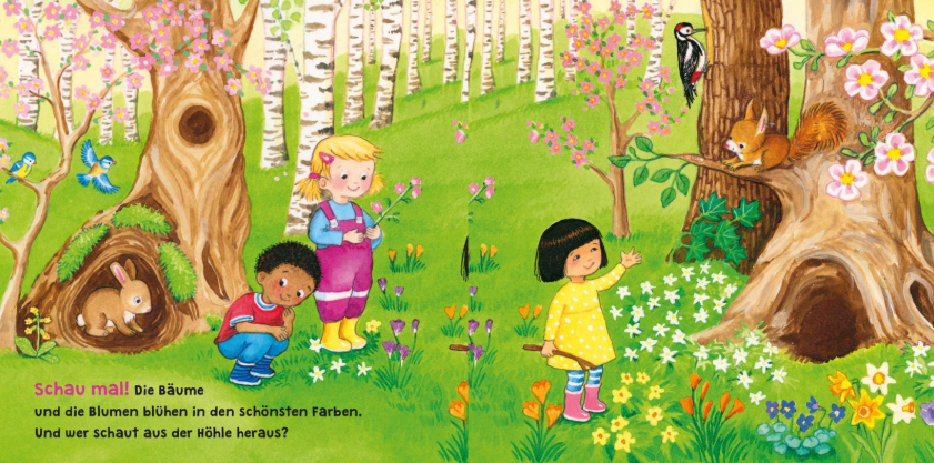 Schau mal, im Wald gibt es viel zu entdecken: Wer versteckt sich in der Höhle? Was spielen die Kinder bei Regen und was bei Sonnenschein? Und wer nascht vom geschmückten Tannenbaum?