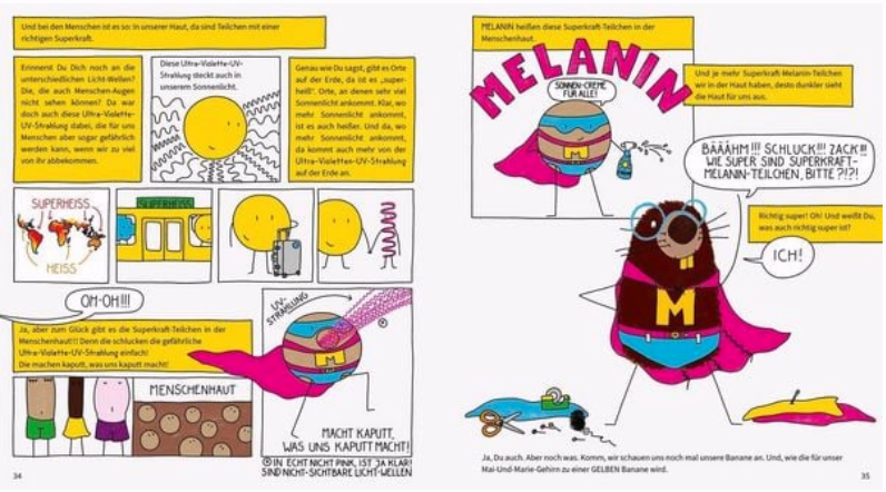 In diesem Sach-Bilderbuch haben Mai Thi Nguyen-Kim und Marie Meimberg auf über 100 Seiten all ihr Wissen in Antworten und Bildern vereint. Wenn du dieses Buch liest, wirst du verstehen, in welchen Farben der Regenbogen für dich leuchtet und was das mit Licht, Wellen und aufgeregten Zapfen zu tun hat. Du wirst verstehen: Diese scheinbar kleine Frage ist mit unserem Gehirn, Clown-Fangschreckenkrebsen und Bananen verbunden. Denn Bananen haben zwar eine Bananen-Form. Aber eine Bananen-Farbe, die haben sie eigentlich nicht. Diese scheinbar kleine Frage steckt voller Surf-Träume, Box-Schmerzen und Wirklichkeits-Wahrnehmung. Deswegen ist sie auch mit Möwen und Ottern verbunden. Und mit uns Menschen. Wen wir lieben. Und wie bunt unsere Liebe ist.
