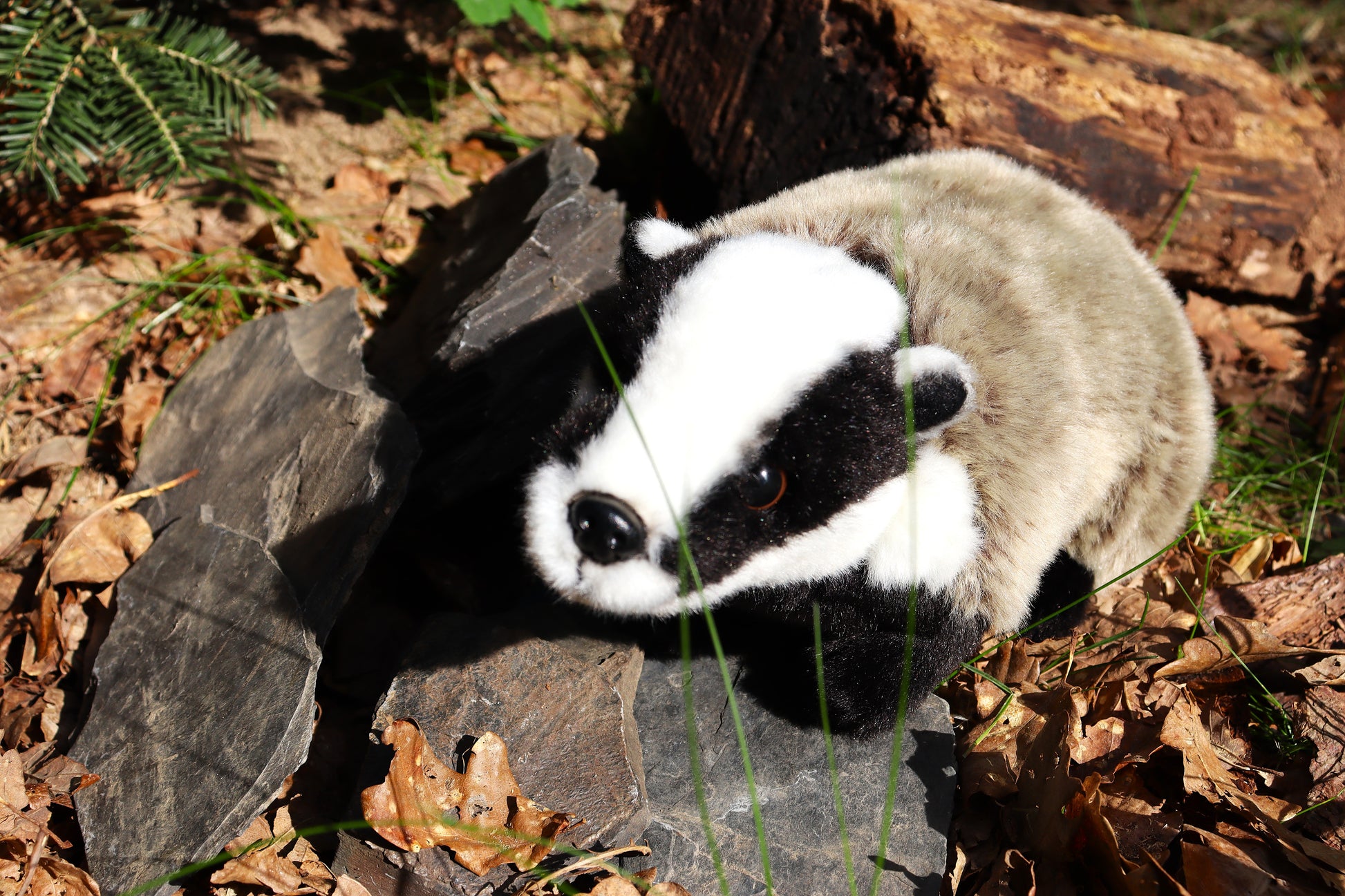 Der coole Dachs von Teddy Hermann hat eine sehr natürliche Farbkombination bekommen und sieht daher den Original zum Verwechseln ähnlich! Der Kopf ist schwarz-weiß gestreift, der Körper hat ein sehr weiches und angenehmes graues Fell und die Pfoten sind ebenfalls im dunklen Farbton gehalten. Kaum sichtbar versteckt sich ein ganz kleines graues Schwänzchen und macht den Dachs nur noch hübscher! Das Kuscheltier hat einen nachdenklichen, vorsichtigen und interessierten Blick und freut sich auf Spiel und Spaß.