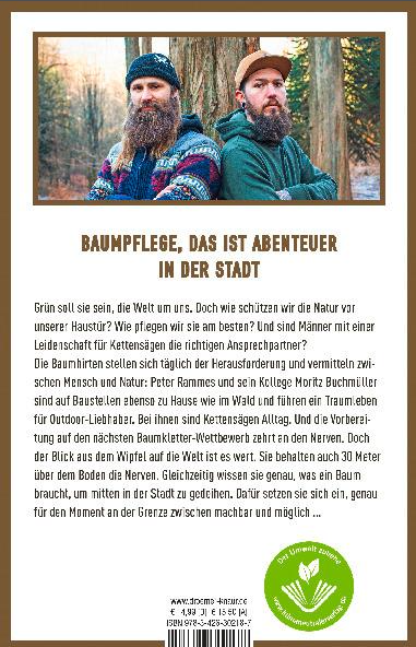 Teamwork, Technik, Schweiß und Ausdauer - täglich stellen die Baumhirten Peter Rammes und Moritz Buchmüller sich der Herausforderung, zwischen Natur und Mensch zu vermitteln, und sorgen für Sicherheit, wo beide sich Lebensraum teilen. Als Garten- und Landschaftsbauer haben sie ihren eigenen Baumpflege-Fachbetrieb. Sie bilden aus – im Baumklettern und an der Motorsäge. Und sie nehmen alljährlich an Baumkletter-Meisterschaften teil, wenn sie nicht gerade beruflich im Baum sitzen und den Blick über die Welt genießen.