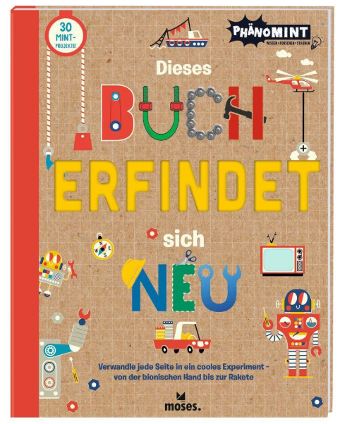 PhänoMINT - Das bedeutet: Phänomenale Experimente für neugierige Entdecker im Schulkindalter. Große Themengebiete wie Mathe, Informatik, Naturwissenschaft und Technik, werden spielerisch leicht vermittelt. Durch aktives Erleben und Experimentieren kommen die Kinder den naturwissenschaftlichen Phänomenen unseres Alltags auf die Spur - großer Aha-Effekt inklusive.Dieses Buch erfindet sich im wahrsten Sinne des Wortes neu: Seite für Seite können Kinder ab 8 Jahren insgesamt 30 geniale Erfindungen nachbasteln. So verwandelt sich jede Seite in ein cooles Experiment - zum Thema Schwerkraft, den Fliehkräften oder chemischen Reaktionen, von der bionischen Hand bis zur Rakete. Der untere Teil der Seite wird herausgetrennt und kann am Ende wieder zusammengebunden werden, sodass die Nachwuchswissenschaftler*innen die Anleitungen immer wieder zur Hand nehmen können.