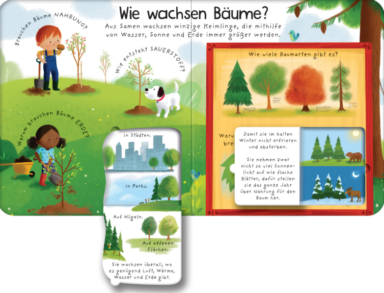 Warum sind Bäume eigentlich wichtig? Wie alt sind die ältesten Bäume der Welt? Und was ist ein Regenwald? Unter mehr als 40 Klappen findest du die Antworten auf diese und viele weitere spannende Fragen.