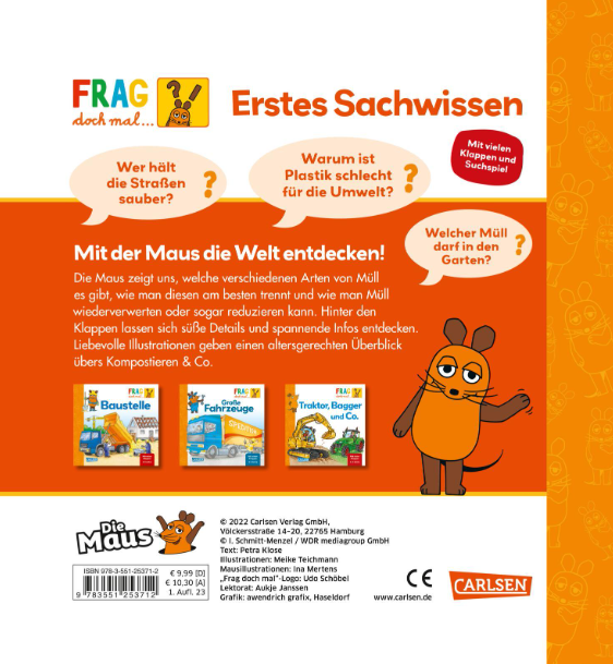 Wer holt unseren Müll ab? Kann man Plastik und Glas wiederverwerten und wohin kommt der restliche Müll? Müll sammelt sich praktisch überall in unserem Alltag an. Die Maus zeigt uns, welche verschiedene Arten von Müll es gibt, wie man diesen am besten trennt und sogar auch, wie man Müll wiederverwerten oder sogar reduzieren kann. Hinter den Klappen lassen sich süße Details und spannende Infos entdecken. Liebevolle Illustrationen geben einen altersgerechten Überblick übers Kompostieren & Co.