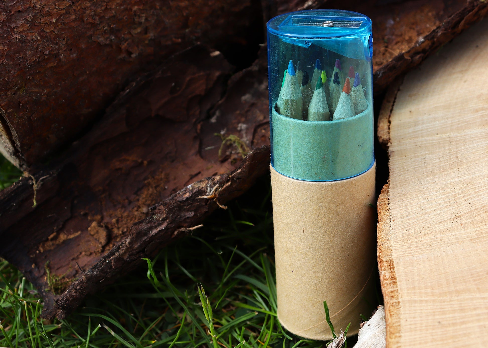 Kleines Stifte-Set mit Spitzer in Pappdose, zum malen und bemalen