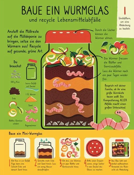 Jeder Schnipsel ist wiederverwendbar oder recyclebar - sogar der Buchrücken, Cover und all die kleinen ausgeschnittenen Teile! Jede Seite verwandelt sich in ein Projekt, das die Welt ein bisschen besser macht: Von Plastik-Checklisten über Insektenhotel-Zimmer bis hin zu Samenpflanzenschalen.