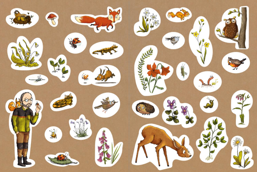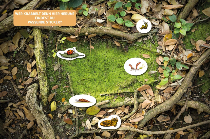 Lesen + Stickern. Entdecke die Tiere im Wald