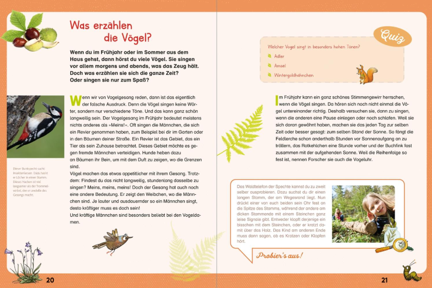 - Große, einfach zu lesende Schrift, viele Quizfragen und kleine Rätsel