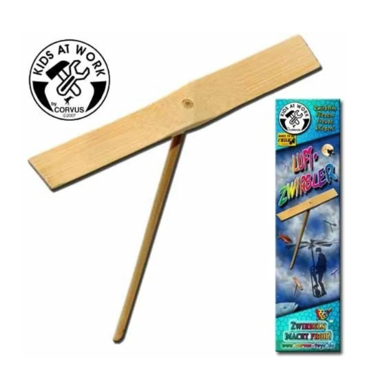 Luftzwirbler aus Bambus, kein Plastik! Wer es nicht kennt: Einfach in die Hand nehmen, wie einen Quirl drehen und loslassen, schon schwebt der Luftzwirbler davon.