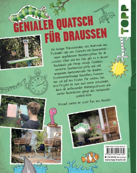 Wenn Väter mit ihren Kindern basteln, kann schon mal ein lustiger Würstchenklauer, eine Anaconda aus Poolnudeln oder eine düsengetrieben Schnecke entstehen. Das und noch vieles mehr zeigt das geniale Made by Papa Bastelbuch mit witzigen Spielen, verrückten Überlebensprojekten und wilden umgebauten Gartenutensilien. Alle Kreativideen rund um das Thema Outdoor. Durch die umfassenden Anleitungsskizzen gelingt das Nachbasteln für Väter und Kinder spielend leicht. Hier ist nicht nur Bastelspaß sondern aus Spielspaß garantiert!