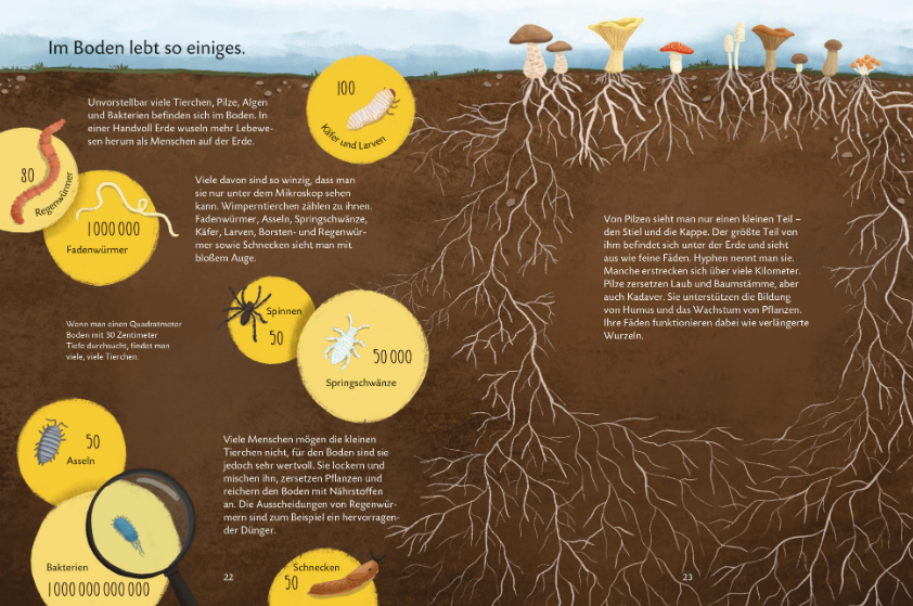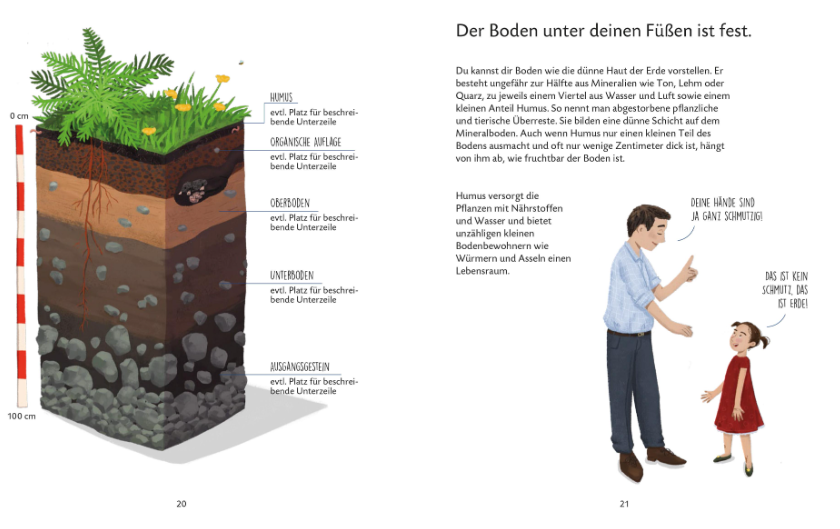 Der Boden ist immer da, ganz selbstverständlich. Wir können auf ihm springen oder hüpfen, ihn wütend mit den Füßen stampfen oder uns gemütlich darauflegen, um die Wolken zu beobachten. Selten denken wir über ihn nach. Dabei ist er unsere Lebensgrundlage: Er filtert und speichert Wasser, beherbergt Rohstoffe und unzählige Lebewesen - es werden sogar Kriege um ihn geführt. Dieses umfangreich und anschaulich bebilderte Buch erklärt Kindern, warum der Boden für Klimaschutz und Biodiversität so wichtig ist und zeigt, dass wir ihn fürs (Über-)leben brauchen.